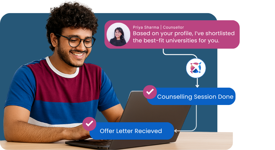 Studio Abroad is a trusted study abroad platform with a Proven track record from last 5 Years that has helped hundreds of students secure offer letters from top universities. We support you throughout the journey from application to visa with personalised guidance at every step.